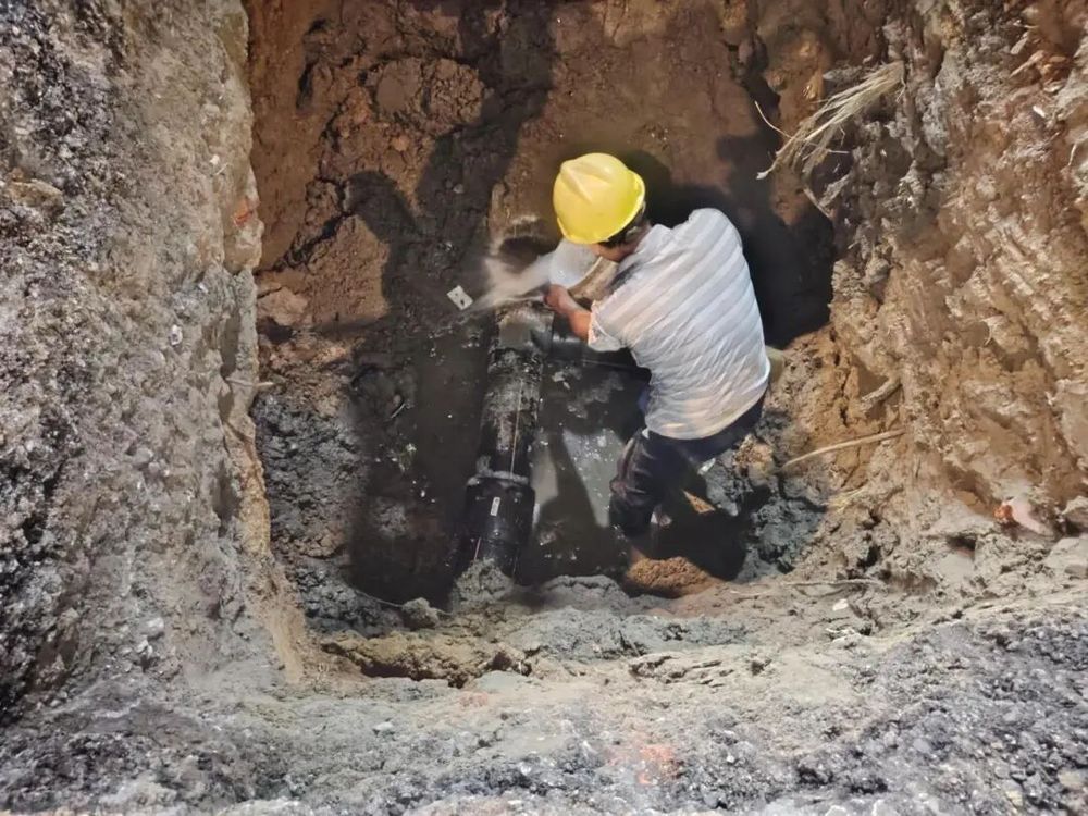 經(jīng)過搶修人員輪班值守、持續(xù)攻堅,最終確定某段三通連接處存在長約十公分的裂紋,系導(dǎo)致積水反復(fù)倒灌的根本原因。搶修隊伍隨即展開連夜作業(yè),克服環(huán)境復(fù)雜、時間緊迫等困難,于次日居民用氣早高峰前順利完成管道修復(fù),并恢復(fù)正常供氣。