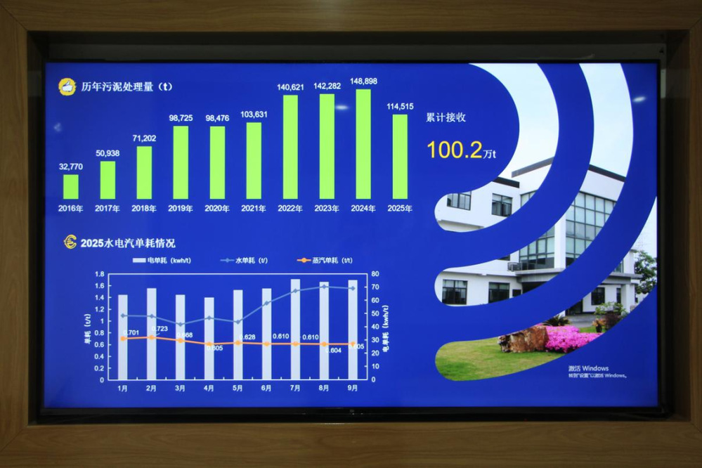在工藝管控與環(huán)保達(dá)標(biāo)層面,企業(yè)搭建全流程智能監(jiān)測體系:污泥進(jìn)場時(shí),通過自動(dòng)采樣設(shè)備檢測金屬、有機(jī)物含量,杜絕不合格污泥入場;干化過程中,中控系統(tǒng)實(shí)時(shí)監(jiān)控溫度、濕度、蒸汽壓力等十余項(xiàng)關(guān)鍵參數(shù),偏差超限時(shí)自動(dòng)報(bào)警調(diào)整,通過精細(xì)化管理,企業(yè)當(dāng)前蒸汽單耗較設(shè)計(jì)值下降32%,用電單耗較設(shè)計(jì)值下降15%,均處于行業(yè)領(lǐng)先水平;尾水、廢氣排放均遠(yuǎn)低于國家排放標(biāo)準(zhǔn),十年來污染物排放合格率始終保持100%,真正實(shí)現(xiàn)“安全處置、環(huán)保達(dá)標(biāo)、資源循環(huán)”的技術(shù)閉環(huán)。