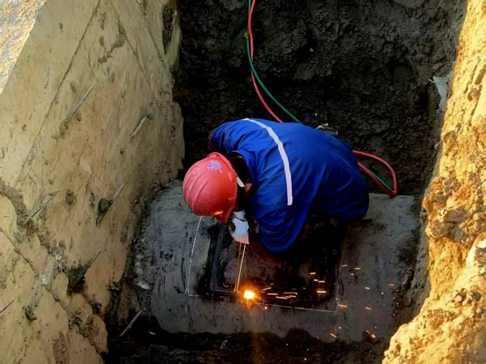 碰接施工正式開始前,潔源公司再次開展現(xiàn)場技術交底,除重申作業(yè)規(guī)范與安全準則外,結合現(xiàn)場實際,對夜間照明布局、施工設備就位精度、周邊交通動線規(guī)劃等細節(jié)進行了最終確認與動態(tài)微調,幫助各關鍵崗位人員對作業(yè)任務形成清晰統(tǒng)一共識。作業(yè)開始后,各施工小組嚴格按照既定方案推進工作,為搶抓夜間進水量相對較低的窗口期,同步開啟5個施工作業(yè)點,各點位分工明確、銜接高效,施工過程井然有序,最終在19小時內高效完成了管道碰接任務。